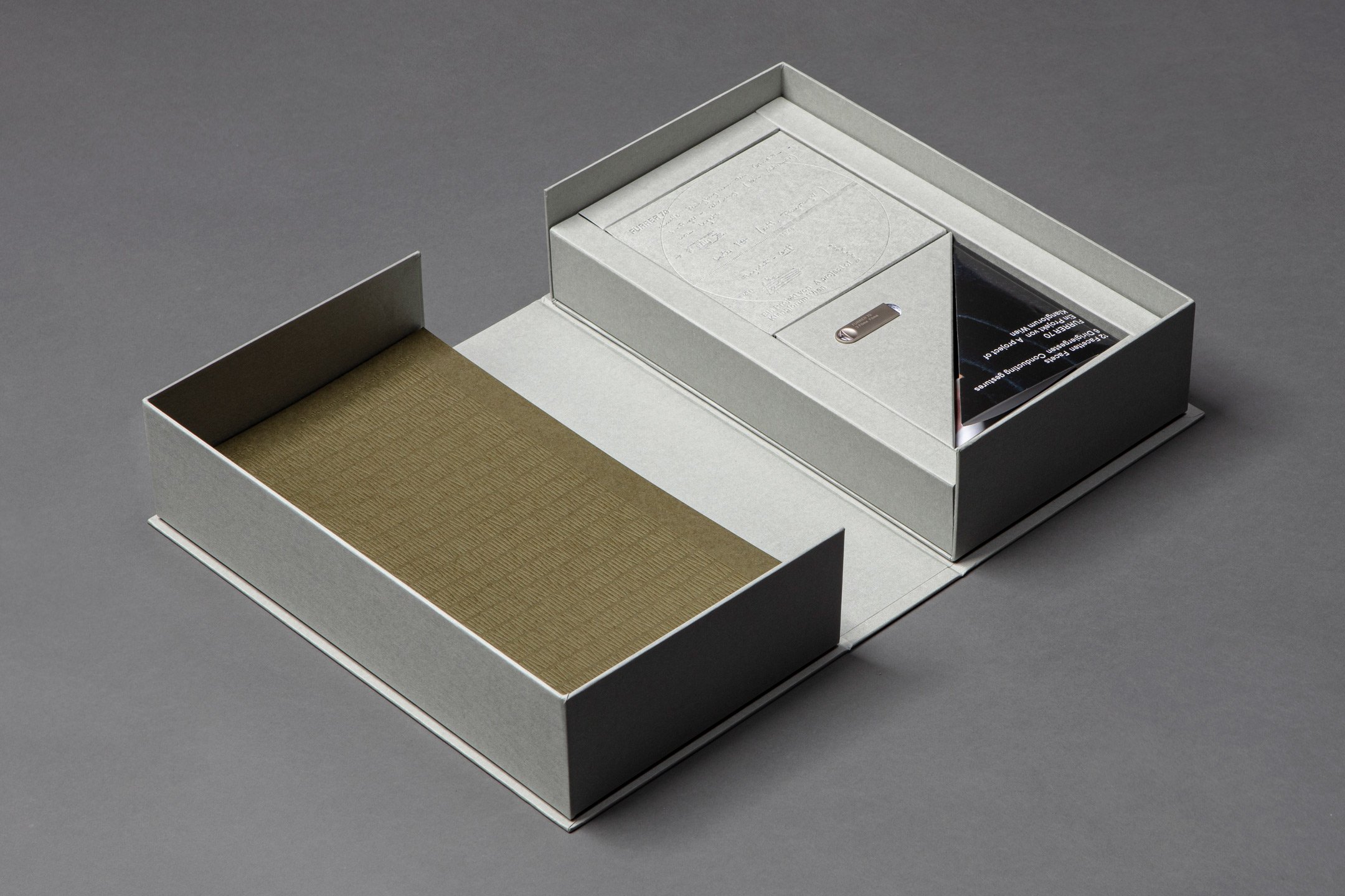 FURRER 70 media box is a tribute to Beat Furrer—composer, conductor, and founder of Klangforum Wien. This meticulously curated collection includes 6 CDs featuring 18 essential works, 3 films, a poster, and 2 books filled with essays, interviews, and photographic sequences, as well as a list of 2560 Books from Beat Furrer’s library. Crafted from high-quality, debossed cardboard, packaging design deliberately avoids printed elements and instead focuses on the haptics and structure of the material. The debossing gives the box a subtle depth and is reminiscent of the delicate and complex structures in Furrer’s music. The simplicity of the design emphasizes the importance of the content and places the composer and his work at the centre.